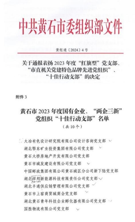 【喜報】喜訊!城發(fā)建工集團城發(fā)建設公司黨支部獲評2023年度黃石市國有企業(yè) “十佳行動支部”